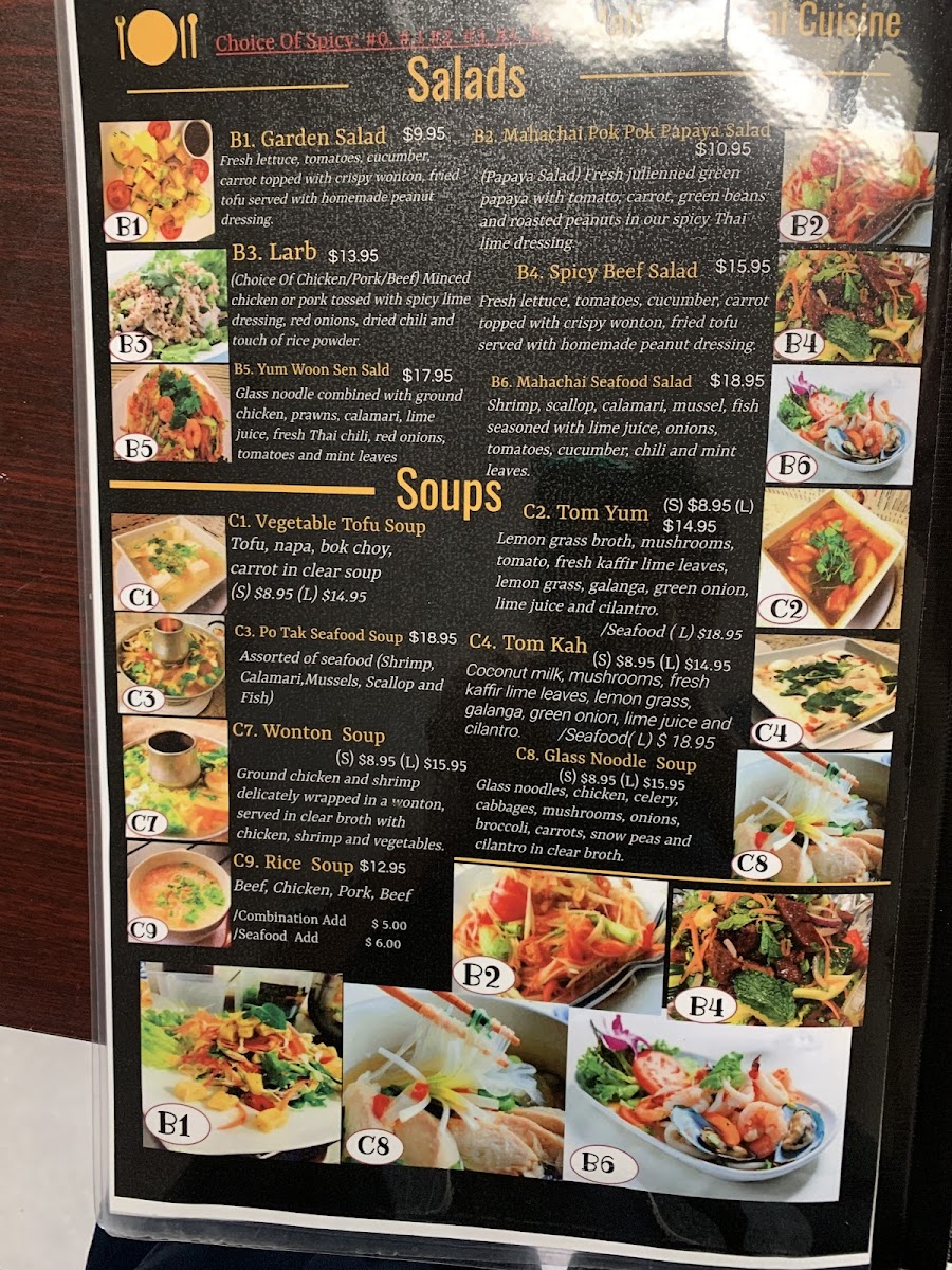 The menu at Mahachai is a celebration of Thai flavors, showcasing a range of enticing appetizers, hearty soups, and luscious curries. Start your culinary journey with their Dumplings (Chicken or Vegetable, $6.95), featuring delicate homemade wrappers that cradle a flavorful filling, either steamed to perfection or fried to a golden crisp. For something with a kick, try the Spicy Wings ($8.95), deep-fried to a satisfying crunch and generously coated with a spicy sauce that lingers on the palate.